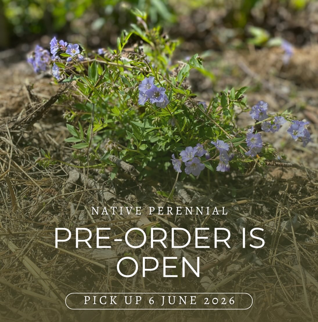 We offer our plants in 6-opacks and as sturdy second-year plants. We also offer a limited number of 50-plug trays specially curated for specific conditions (rain garden, med-dry, shade) containing a mix of species that range in color and bloom time.